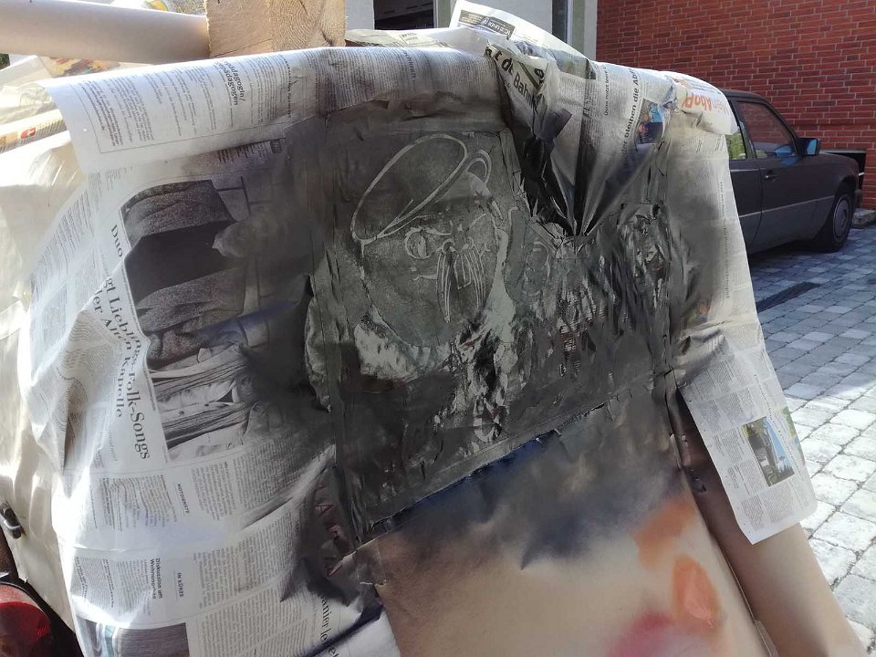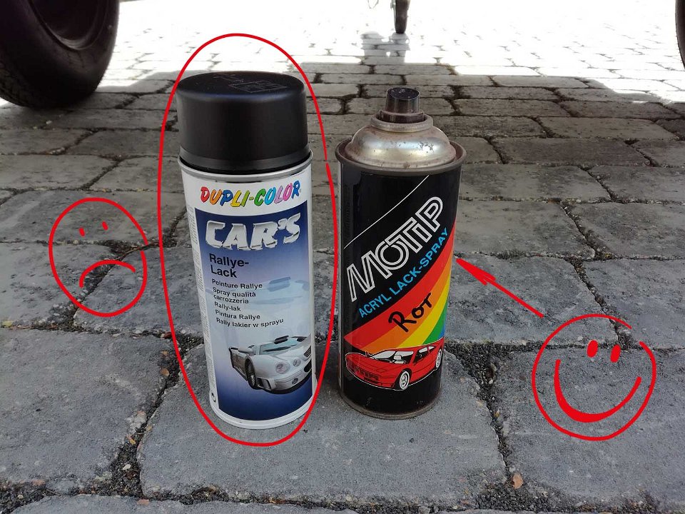 35 Haben wir wieder was gelernt. MOTIP Lack glänzend haftet gut und wird schön matt auf der PVC-Plane. Duplicolor Rallyeschwarz würde ich nicht empfehlen. Haftet nicht gut.