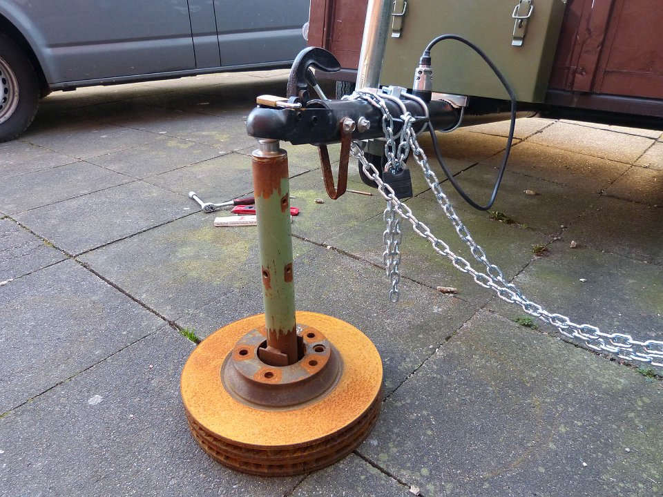 26 Verschleißplatte aus 9 mm Siebdruckplatte. Macht es besser als ich, kauft nicht die ganz billige. Einmal benutzt und sieht so aus.