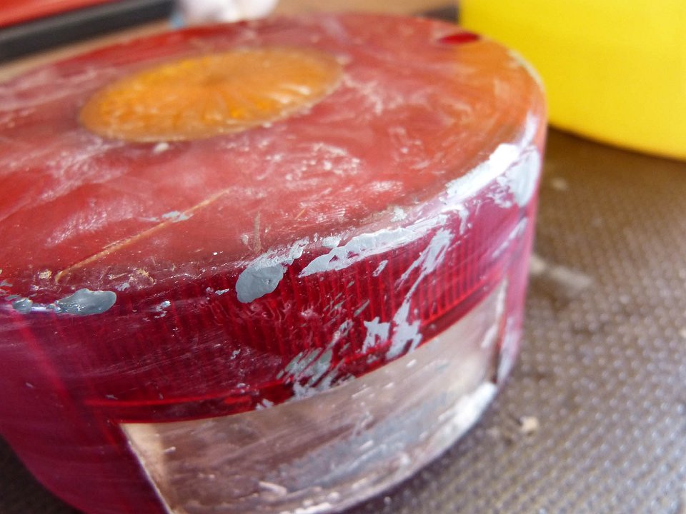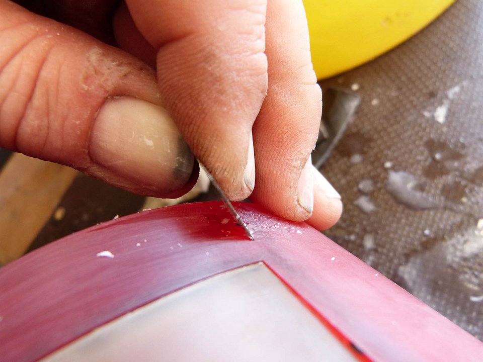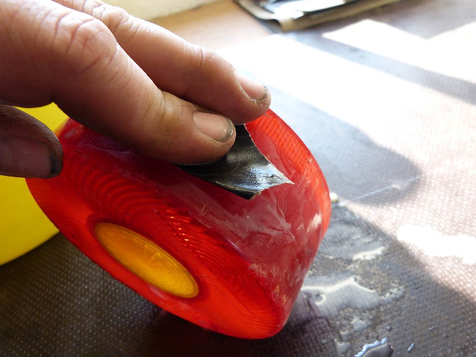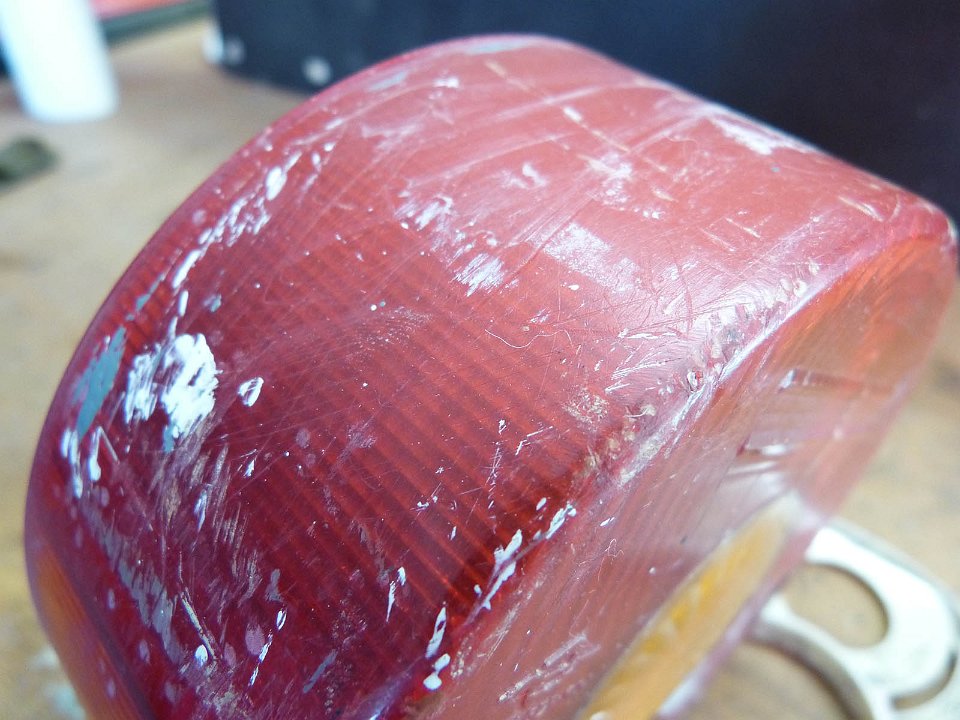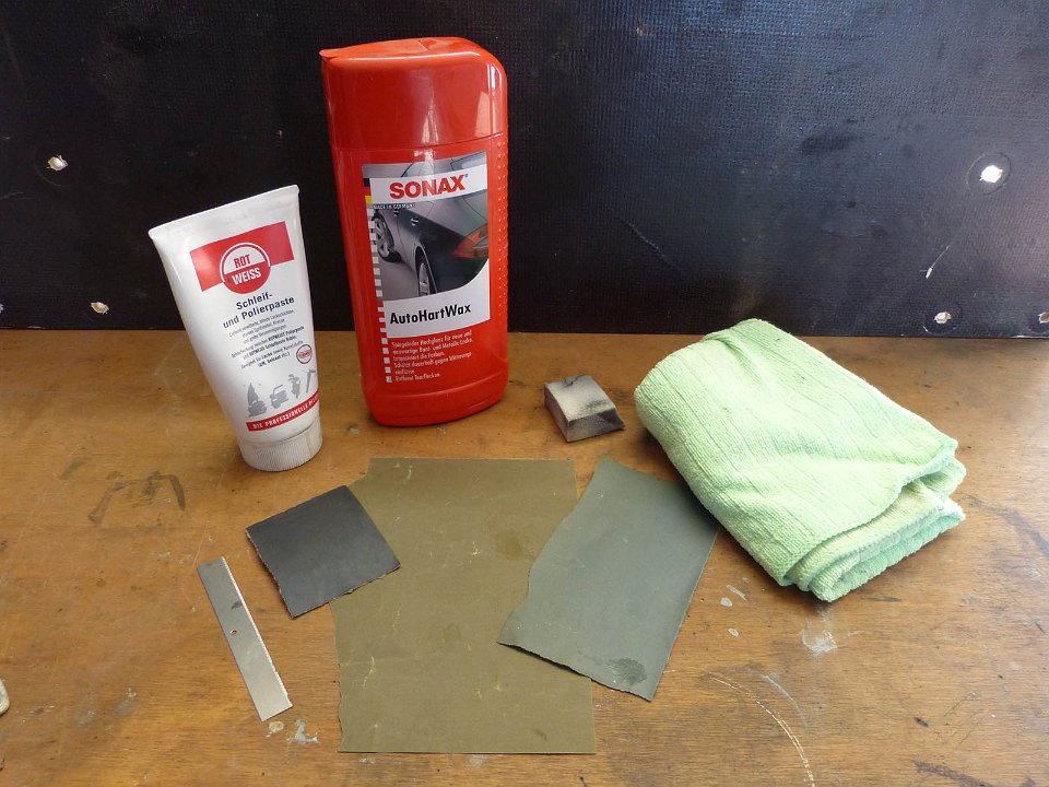 Die ganz fetten Risse und Kratzer lasse ich so, das fällt nach dem Polieren kaum auf.