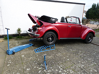 ich monatelang die Garage renoviert habe, mit dem Käfer eingezogen. Erstmal habe ich die Serienfelgen draufgesteckt, die