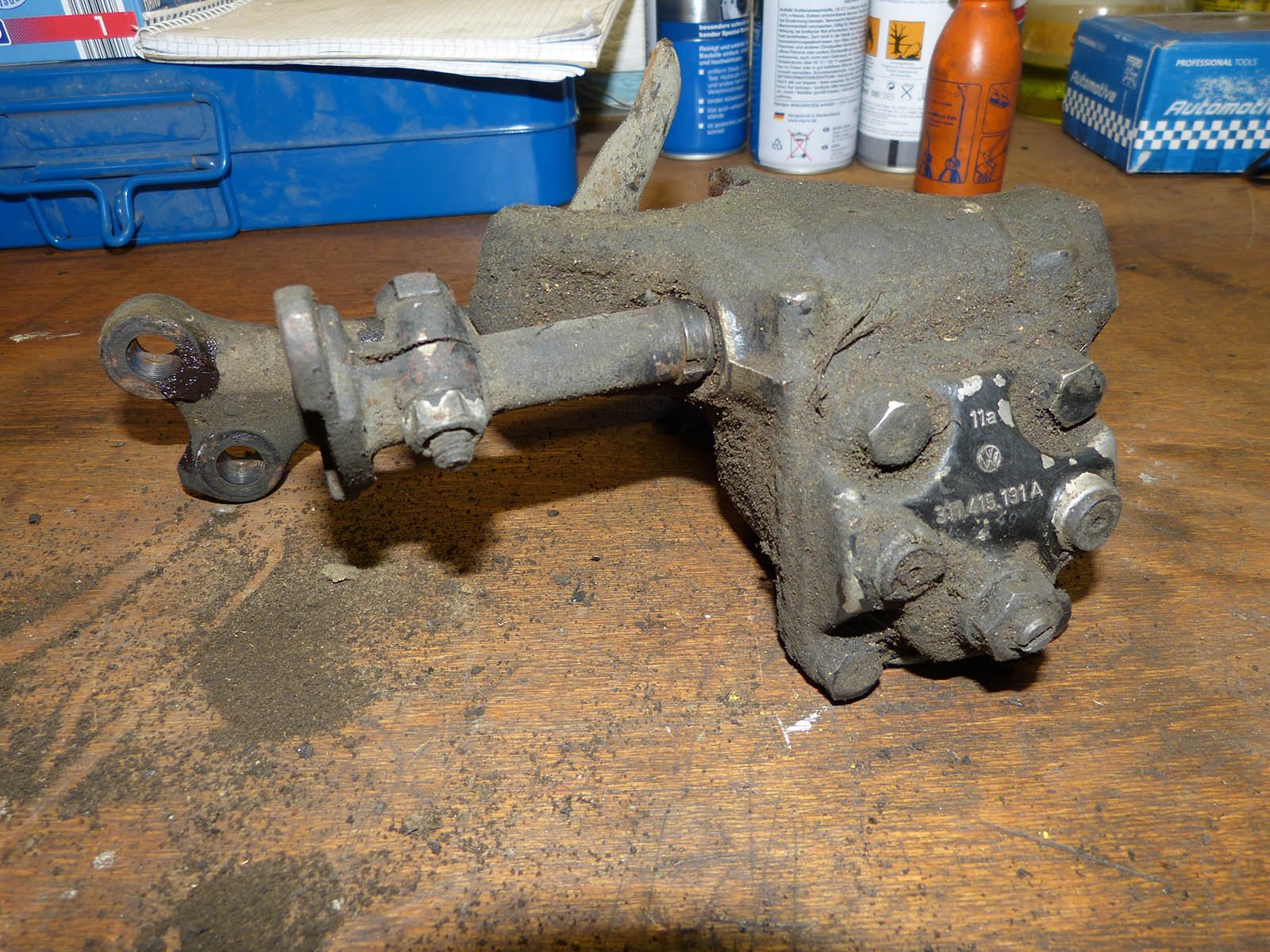 Bild-RückmeldungAuswählen Alle Keine Kommentar hinzuflügen VorderachseReparaturblech am Achsschild. Wenn es in der Achse noch einigermaßen gut aussieht, kann es so bleiben.VorderachseAnkerblech und Achsschenkel sind noch in brauchbaren Zustand.VorderachseWenn der Dreck abgebürstet wird, kommt ein brauchbares Lenkgetriebe zum Vorschein.VorderachseNettes Detail.VorderachseDie Spurstangen gehen auch noch mal.VorderachseTrommeln mit Bremsenkram. Kommt außer den Trommeln alles neu.VorderachseVorderachse, Teilweise zerlegt.VorderachseVorderachse, tranchiert.VorderachseHinter den Ankerblechen mußte man das Dicke erst mal runterklopfen, aber ist alles noch brauchbar.VorderachseSoll das gekröpft sein? Oder ist es verbogen? Die Spurstange war jedenfalls verbogen. Habe ich schon gerichtet. Neue Bilder AufbauMotor
