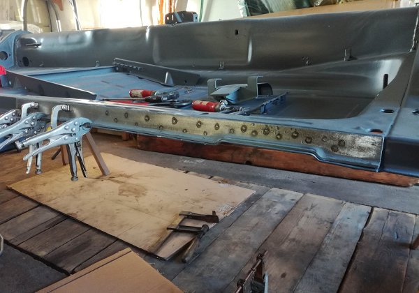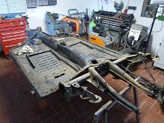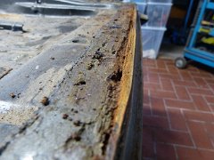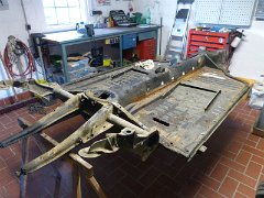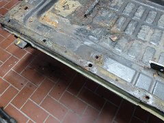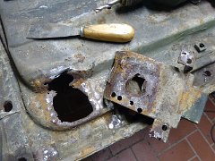 Bild-RückmeldungAuswählen Alle Keine Kommentar hinzuflügen BodengruppeDie Bodengruppe liegt auf Böcken. Zeit für ernsthafte Reparaturen :) BodengruppeAls erstes sollte man vielleicht mal den gröbsten Dreck entfernen. BodengruppeObwohl der Rost dick war scheint das Bodenblech nicht durch zu sein. Nach dem Sandstrahlen bin ich schlauer. BodengruppeDie Benzinleitung ist noch stabil genug, Schwein gehabt! BodengruppeMan sieht schon, wo sich die Verstärkung in Zentimeterdicken Blattrost verwandelt hat. BodengruppeDas hellrote ist Rost. Er hat die Verstärkung geradezu abgesprengt. BodengruppeAber zuerst müssen die Überreste der alten Chassisdichtung ab, man bleibt überall kleben! BodengruppeÖrks! BodengruppeRostloch mit Recyclingblech geflickt. Al Gore wäre stolz auf euch. BodengruppeJa, so in etwa hatte ich mir das vorgestellt. Neue Bilder VorspielKarosserie