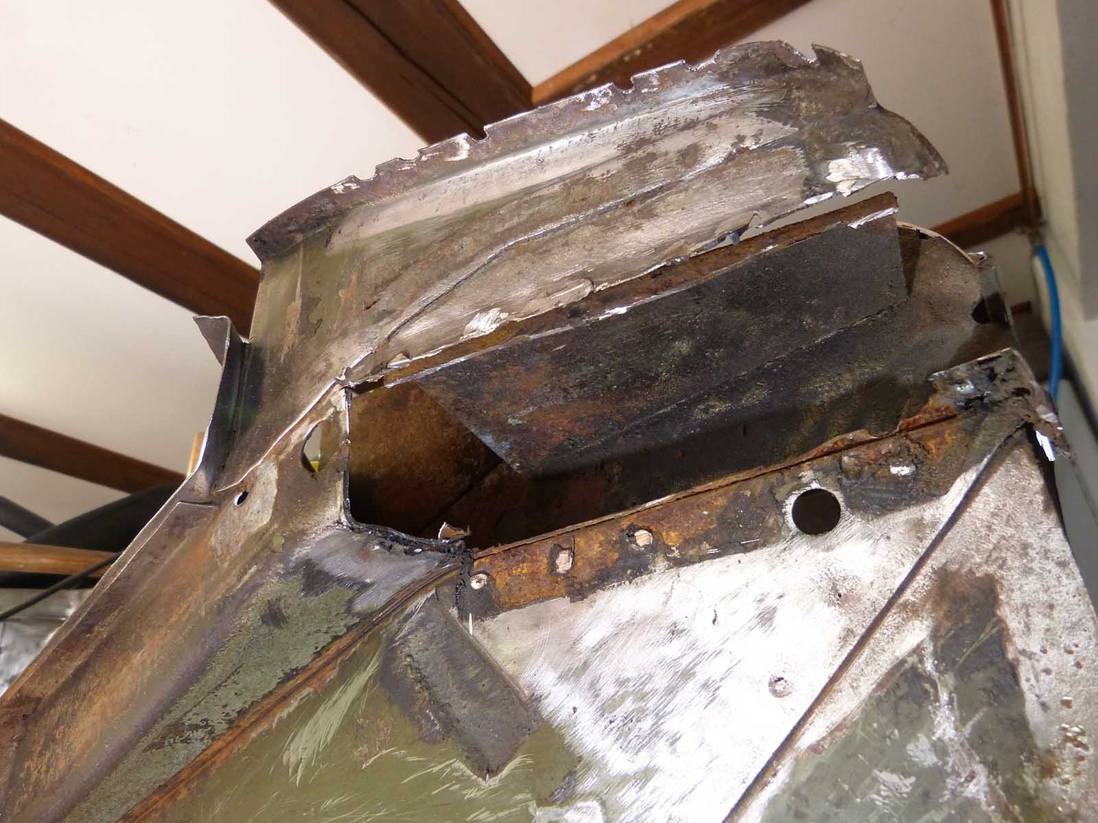 Und noch ein Rostloch. Da nehmen wir lieber mal alles ab, was im Weg ist.