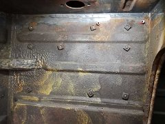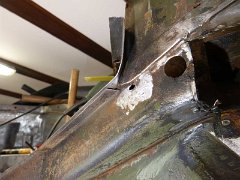... bis mir aufging, daß da jemand die Schraublöcher für den SEM-Grundträger (Bundeswehr-Funkgerät) zugespachtelt hat. Saubere Arbeit, alles was recht ist.