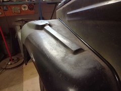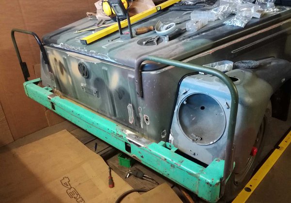 Bild-RückmeldungAuswählen Alle Keine Kommentar hinzuflügen Kotflügel vorneWo der Kotflügel am Flansch drängelte, wurde er noch etwas beschnitten.Kotflügel vorneKeder sitzt schon ganz gut. Die Feinheiten folgen nach der Lackierung.Kotflügel vorneAber sieht schon ganz fein aus.Stoßstange vorneVorne alles eingepasst. Die Stoßstange war etwas verbogen.Stoßstange vorneGerichtet wurde es mit einigen Schlitzen die nach dem Geradebiegen wieder verschweißt wurden.GleitblechDie Schraublöcher des Gleitblechs fluchteten alle etwas schlecht. Die beiden Schrauben an der Vorderachse passten gar nicht.ZauberschraubenDie Schrauben, die sich am Allerbesten ansetzen lassen. Mercedes kann's.GleitblechUnten bohre ich einfach Löcher an passender Stelle.GleitblechUnd decke alles mit angesenkten 10er Karosseriescheiben ab.Kotflügel hintenKotflügel hinten inklusive Keder montiert. Neue Bilder Nov./Dez. 2018