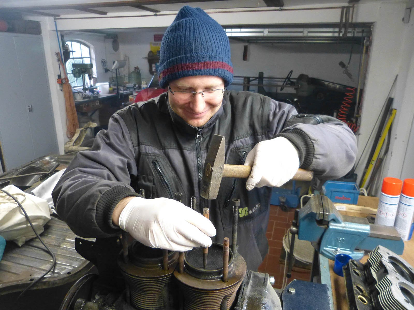 Bild-RückmeldungAuswählen Alle Keine Kommentar hinzuflügen MotordemontageDas Bild ist ja bekannt: Ausgebauter MotorMotordemontageExtra für die Bundeswehr angefertigt :)MotordemontageHier noch mal ein Bild vom zerkloppten Zylinder...MotordemontageDas war unnötig. Man soll eben nicht mit rechts hämmern.Motordemontage Motorinstandsetzung. Meister Berger körnt den Kolben höchstpersönlich.MotordemontageHuch, wohl doch 'ne gute Idee den Motor zu zerlegen!Motordemontage"Ich habe den Abzieher, der wird jetzt auch benutzt!"MotordemontageGleiches gilt für die Schwungradklaue...MotordemontageNoch die Pleuel ab...Motordemontageund die Räder abgezogen. Doch Halt! Erst den spiritusgetränkten Lappen... Neue Bilder AchsenElektrische Anlage