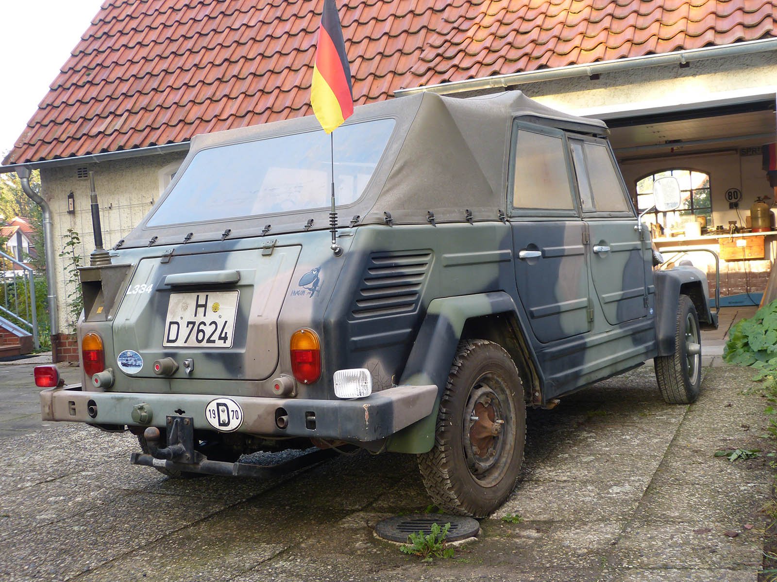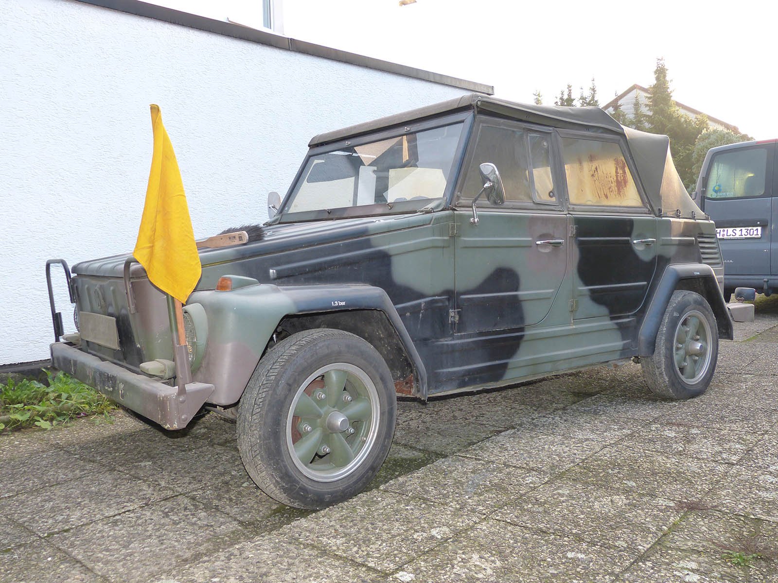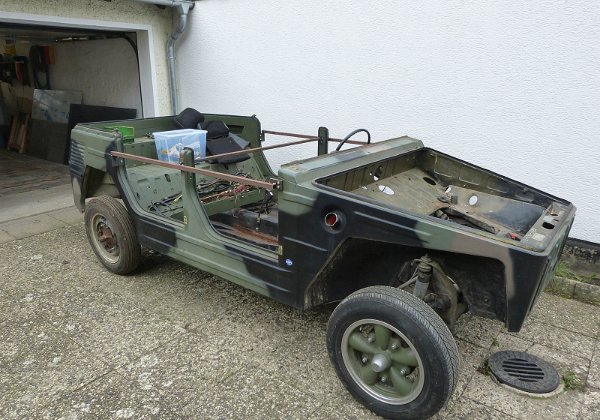 Bild-RückmeldungAuswählen Alle Keine Kommentar hinzuflügen AbholenIrgendwo dahinter muß er sein...Abholen... ah, da ist er ja!AbholenSchnell auf den Anhänger damit!AbholenUnd nach Hause geflitzt. Schnell noch die Reifen aufpumpen.AnschauenZu Hause angekommen. Sieht doch ganz gut aus. Mit gesetzter gelber Flagge, wie sich das gehört.AnschauenVon hinten auch.AnschauenUnd von rechts hinten. Das Baujahr stimmt nicht, ist '69 :)AnschauenDie Kupplung, die mal 500 Mark gekostet hat (was teuer genug war), kostet mittlerweile 500 Euro...AnschauenIst aber ein o-ri-gi-nal. Wenngleich eine späte Ausführung. Wenn ich noch mal eine Frühe bekomme, tausche ich sie aus.AnschauenKennnzeichen auch getarnt ;) Neue Bilder Bodengruppe