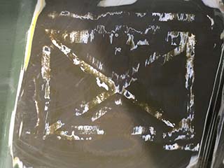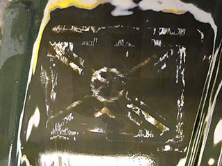 Rehts ist auf jeden Fall ein rotes Kreuz auflackiert. Ich habe noch mal etwas großflächiger geschliffen und