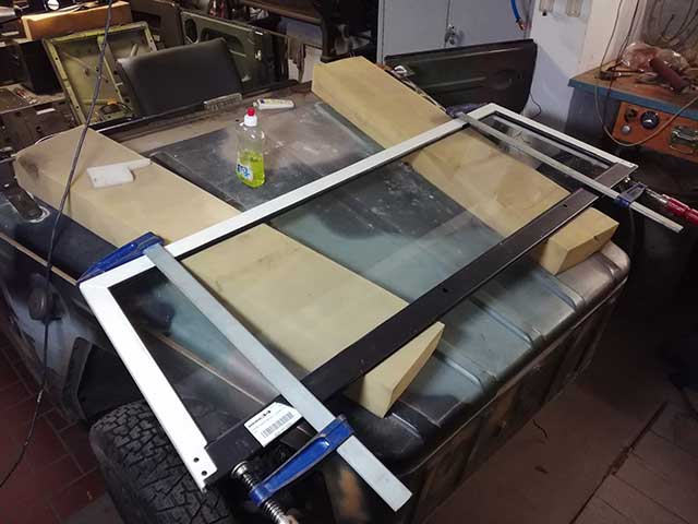 und alle Reste vom Scheibenrahmen abgeschliffen. Da die am Scheibenrahmen angeschweißten Scharnieroberteile