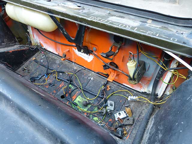 Kabelbaum lief, sicher eine gute Idee (yuck!) An der Kabeldurchführung im Motorraum war die Dichtmasse ein wenig